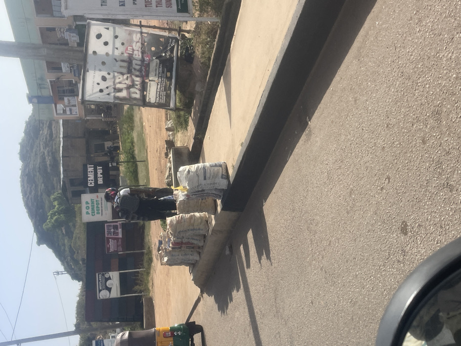 This image captures a street scene in the city of Unknown, Nigeria, under clear daylight conditions with distinct shadows indicating high sun