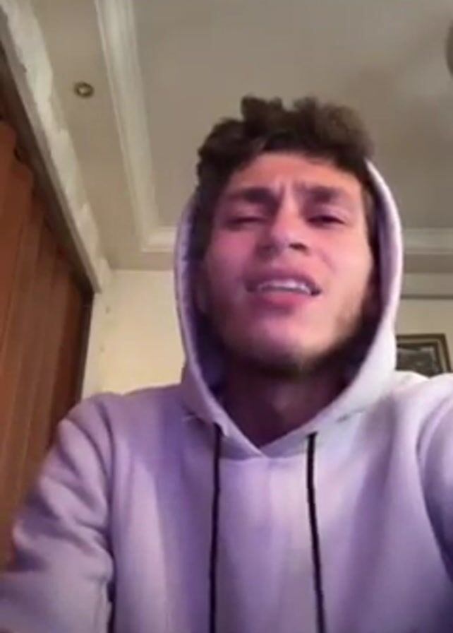 A young man is shown from the chest up in a close-up selfie view