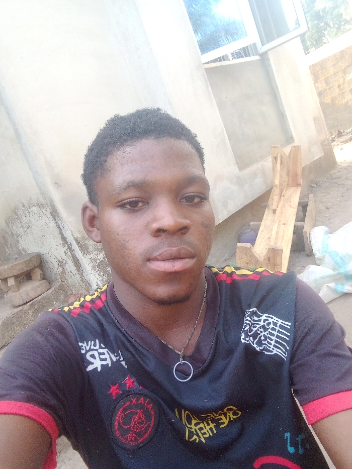 A young Black male, appearing in his late teens or early twenties, is depicted in a close-up, waist-up portrait captured outdoors in Akwanga, Nigeria