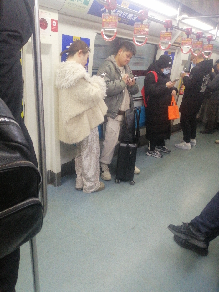 - "The image displays the interior of a subway car in Fengtai District, China, occupied by several standing passengers" by FM-1OS812, licensed under CC BY 4.0