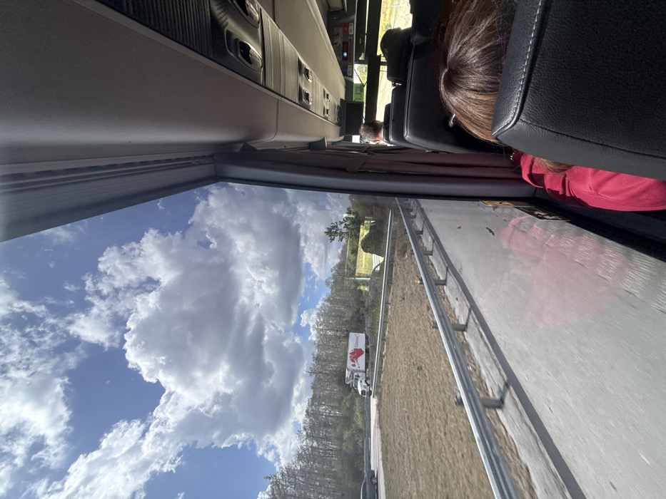 - "The image depicts a scene observed from the interior of a moving passenger bus, looking forward and out the right-side window, on a sunny day in Unknown, United States" by FM-62dDj2, licensed under CC BY 4.0