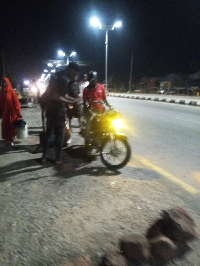 This nighttime image captures a street scene in Zango-ndaji, Nigeria