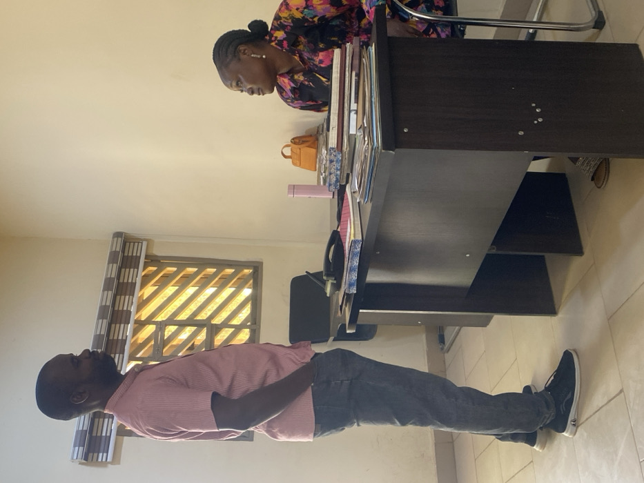 An indoor scene in an office or meeting room in Vom, Nigeria, features two individuals