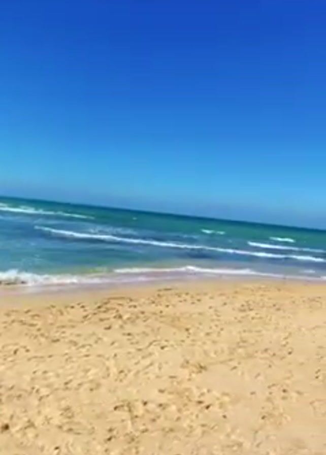 beach scene under a clear blue sky