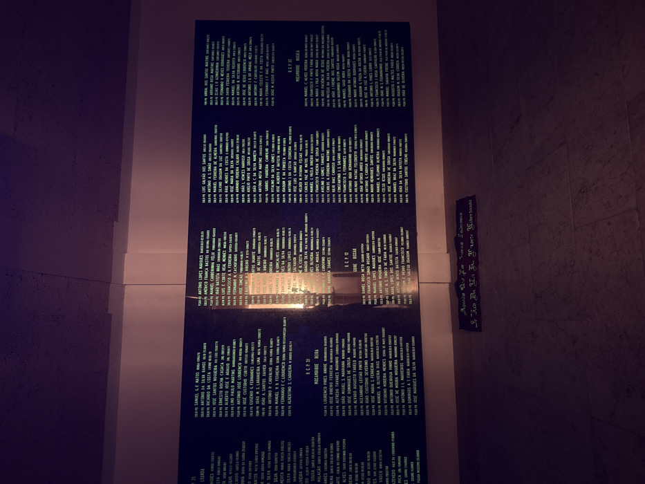 - "This image depicts a large, dark rectangular memorial plaque mounted on a light-colored wall, likely within a building in Praia do Ribatejo, Portugal" by FM-k1rMm1, licensed under CC BY 4.0