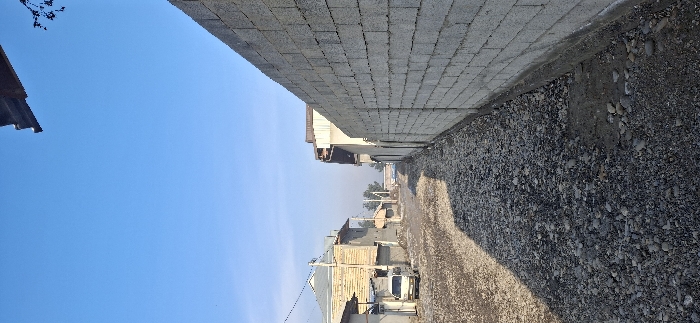 - "A gravel road runs between a concrete block wall on the right and a row of houses on the left" by FM-gnDUp1, licensed under CC BY 4.0