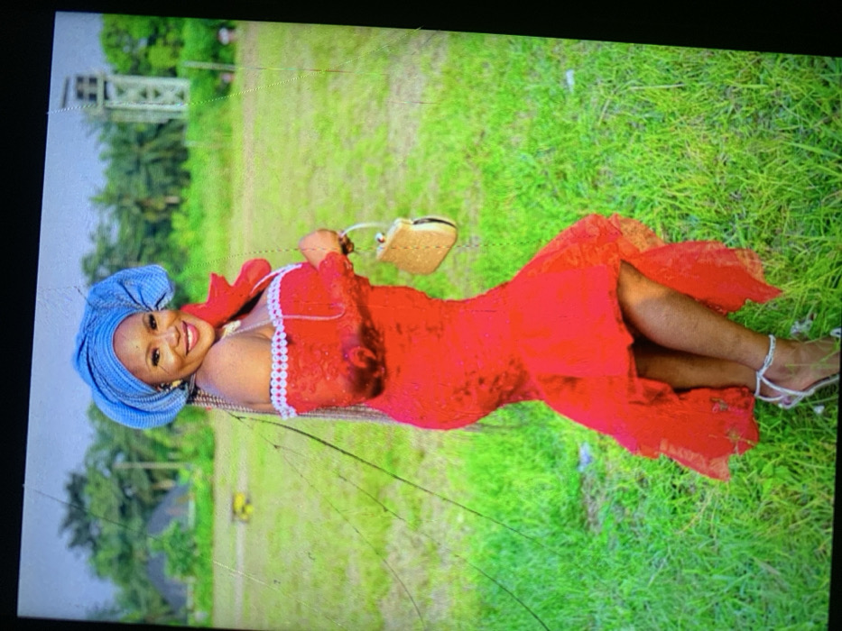An adult female is depicted in an outdoor portrait photograph, taken in what is identified as the city of Rafin Par, Nigeria