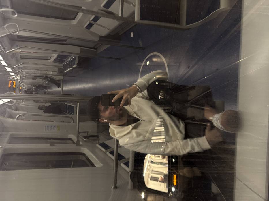 - "The image depicts a reflective selfie taken from within a modern train or metro car, likely part of the Milan Metro M4 line, which serves the area adjacent to Peschiera Borromeo, Italy" by FM-euyLP2, licensed under CC BY 4.0