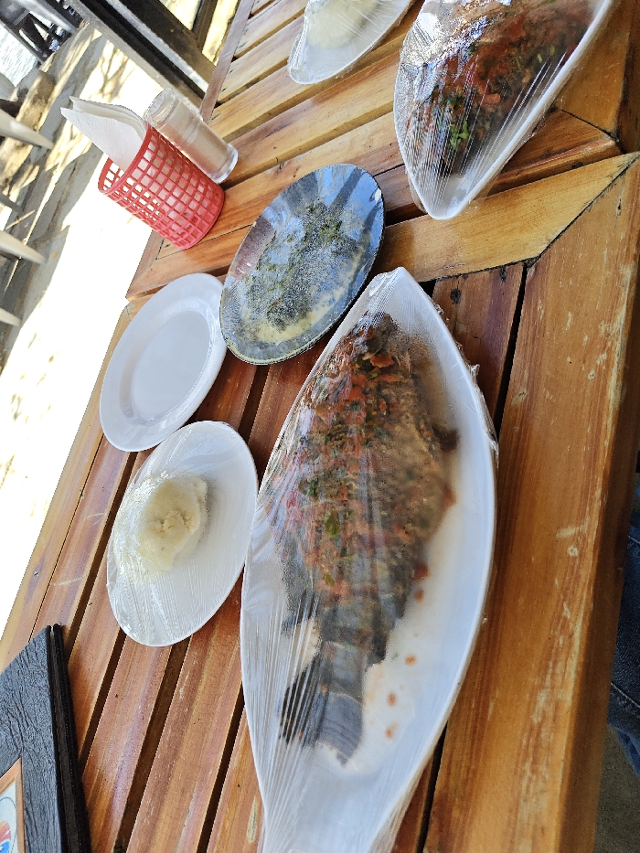 - "The scene displays a prepared meal set on a light brown slatted wooden table, located outdoors or in a semi-outdoor dining area within Kisumu, Kenya" by FM-Ys6e53, licensed under CC BY 4.0
