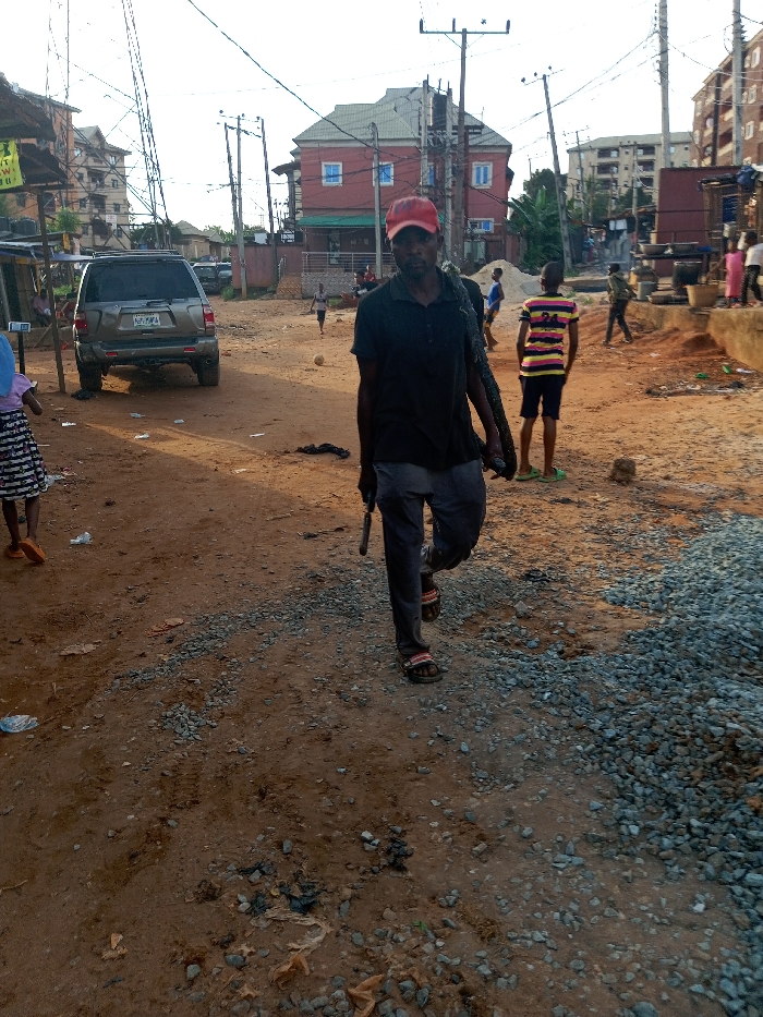 - "This image captures an unpaved street scene in Obosi, Nigeria, illuminated by late afternoon sunlight" by FM-1O94j1, licensed under CC BY 4.0