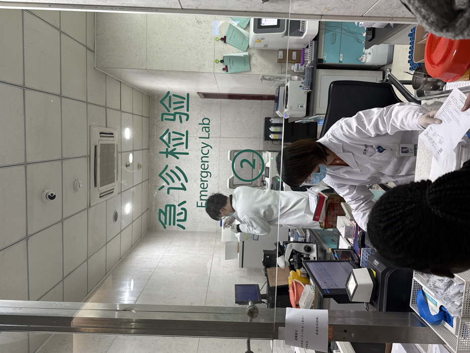 This image captures an indoor scene within the Emergency Lab of a medical facility in Fuyang, China
