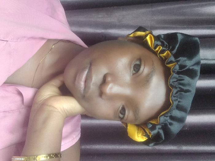 - "A woman rests her face on her hand while wearing a black and gold hair bonnet and a pink shirt" by FM-4fpLO2, licensed under CC BY 4.0