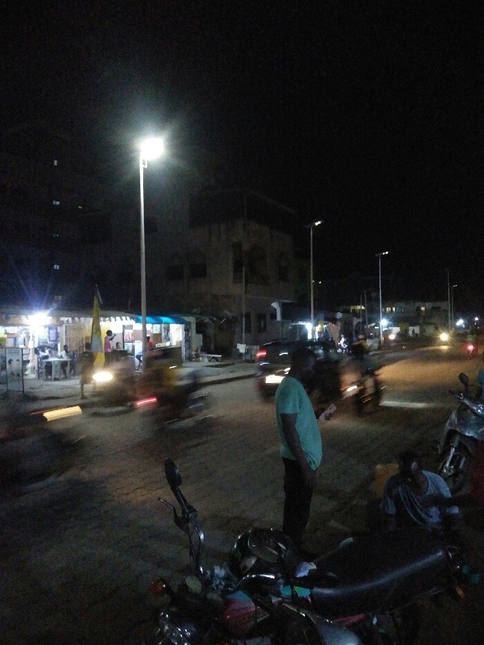 - "The image depicts a nighttime street scene in Cotonou, Benin, illuminated by artificial light sources" by FM-YhEN42, licensed under CC BY 4.0