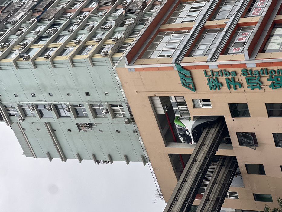 Liziba Station in Chongqing, China is an elevated railway station running through a building