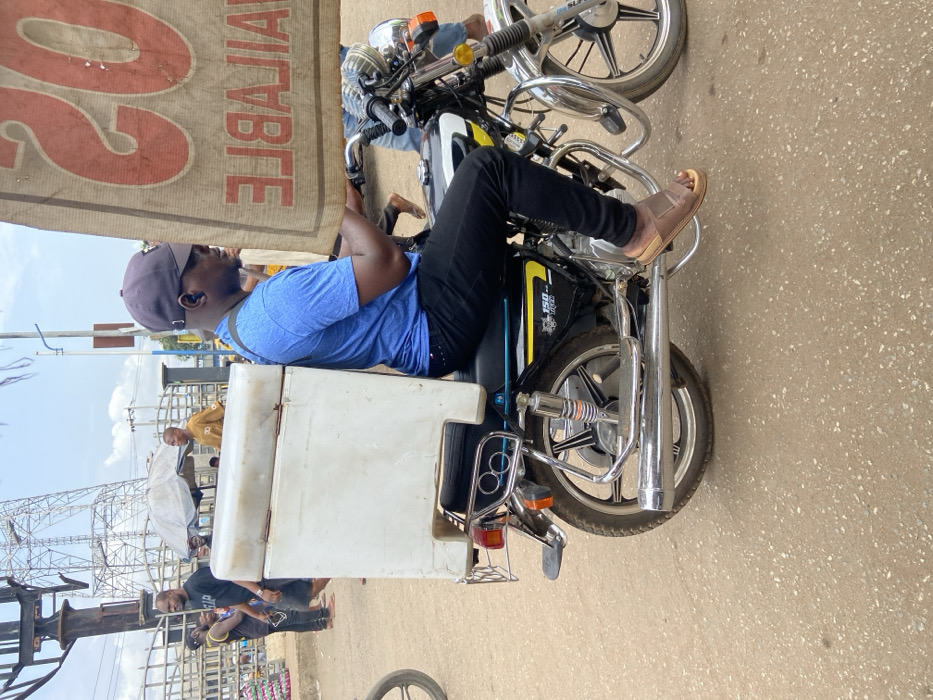 - "A dark-skinned male is seated on a black and chrome "150 Regal" motorcycle, observed from the right side, in a street or market setting within Onitsha, Nigeria" by FM-oc5YD2, licensed under CC BY 4.0