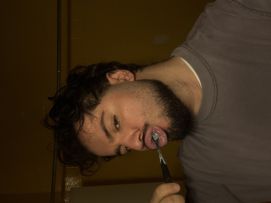 - "A male individual with dark wavy hair and a full beard is depicted in a medium shot, engaging in an oral hygiene activity in an indoor setting within Vila Nova de Gaia, Portugal" by FM-euyLP2, licensed under CC BY 4.0