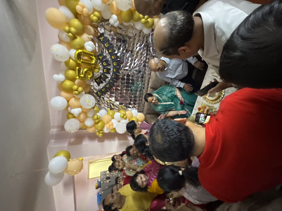 - "An indoor scene in a residence within Bidhannagar, India, depicts a multi-generational gathering celebrating a "50" year anniversary" by FM-KoaHv1, licensed under CC BY 4.0
