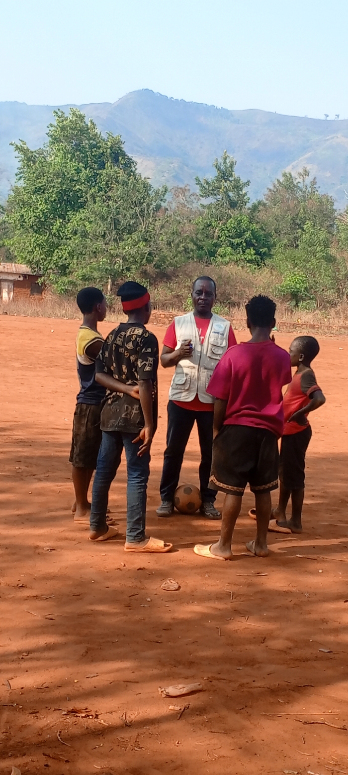 - "An outdoor scene in Ngalula, Democratic Republic of the Congo, depicts one adult male instructing four younger individuals on a reddish-brown dirt field under a clear blue sky" by FM-Di9s03, licensed under CC BY 4.0