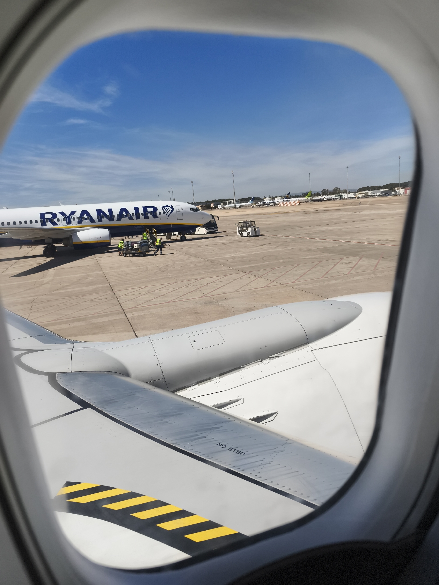 - "The image captures an airport tarmac view from an aircraft window at Valencia Airport (VLC) in Manises, Spain, under a clear blue sky" by FM-t8ovw1, licensed under CC BY 4.0