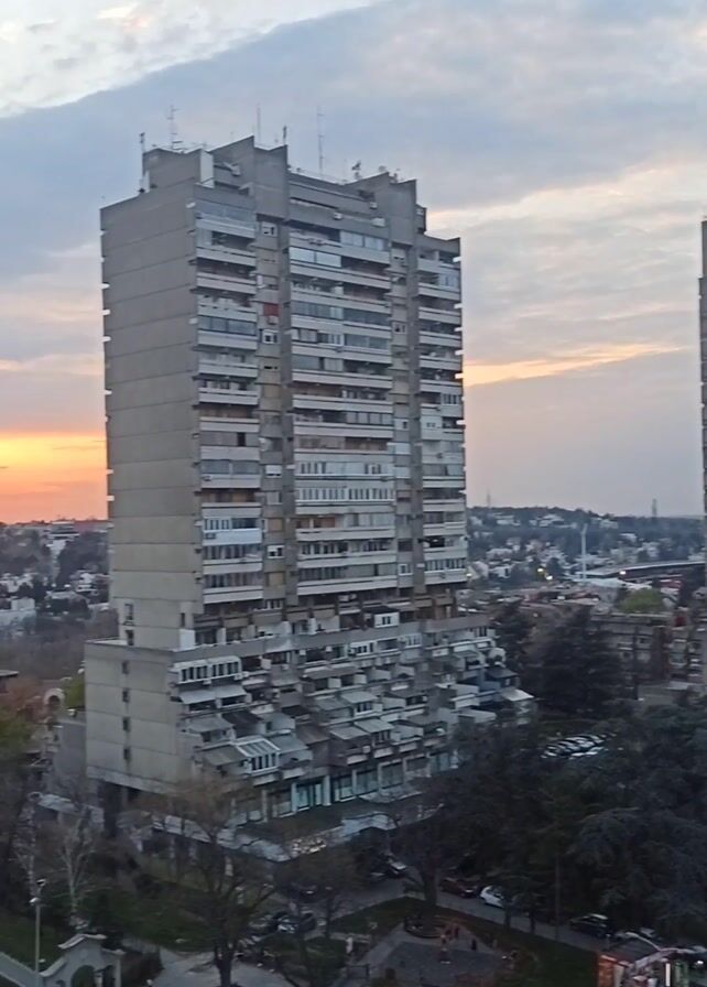 - "cityscape during sunset, with a focus on two tall, brutalist-style apartment buildings" by FM-9p32m1, licensed under CC BY 4.0