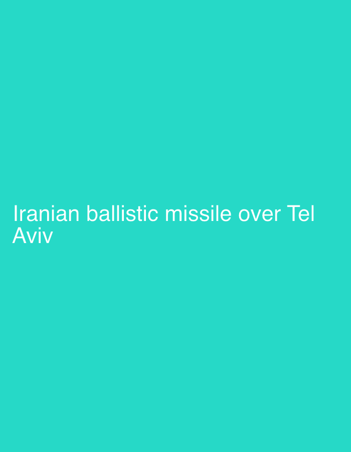 The image displays a solid, uniform teal-colored background. Centered horizontally in the lower-middle section of the image, white sans-serif text is superimposed. The text reads: "Iranian ballistic missile over Tel Aviv". No other visual elements, such as people, subjects, objects, or environmental details, are depicted in the image beyond the colored background and the text. The image does not visually represent Tel Aviv, Israel, or any missile; it solely presents the textual assertion against the teal backdrop.