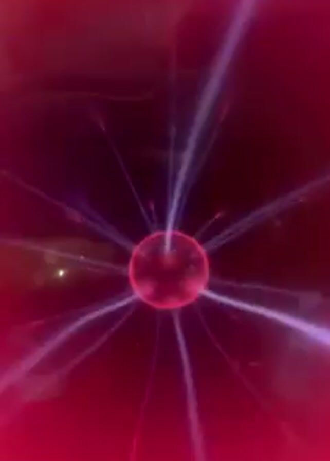 - "A video shows a plasma ball with red and pink light radiating from the center sphere, with multiple purple tendrils extending outward to the glass" by FM-mNSRX2, licensed under CC BY 4.0