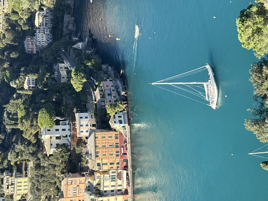 - "This image captures a high-angle view of a coastal scene in Portofino, Italy, looking down into a bay surrounded by steep, tree-covered hillsides" by FM-yjK1X2, licensed under CC BY 4.0