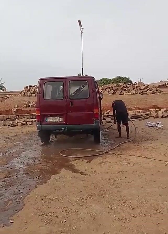 - "A man is washing a red van with a hose in a dirt lot" by FM-yIzVQ2, licensed under CC BY 4.0