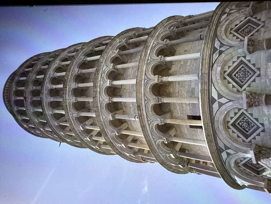 - "The image displays a prominent, multi-tiered stone tower, characterized by its noticeable lean to the viewer's right" by FM-9wgNg2, licensed under CC BY 4.0
