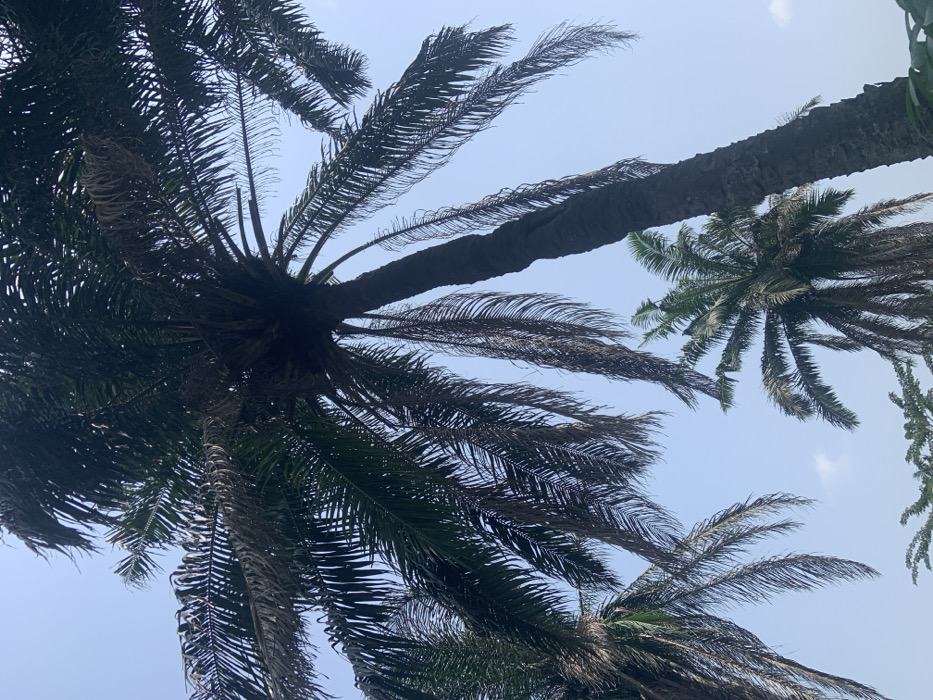 - "The scene presents a low-angle view of multiple palm trees against a clear, light blue sky in Ijanikin, Nigeria" by FM-Fndgt1, licensed under CC BY 4.0