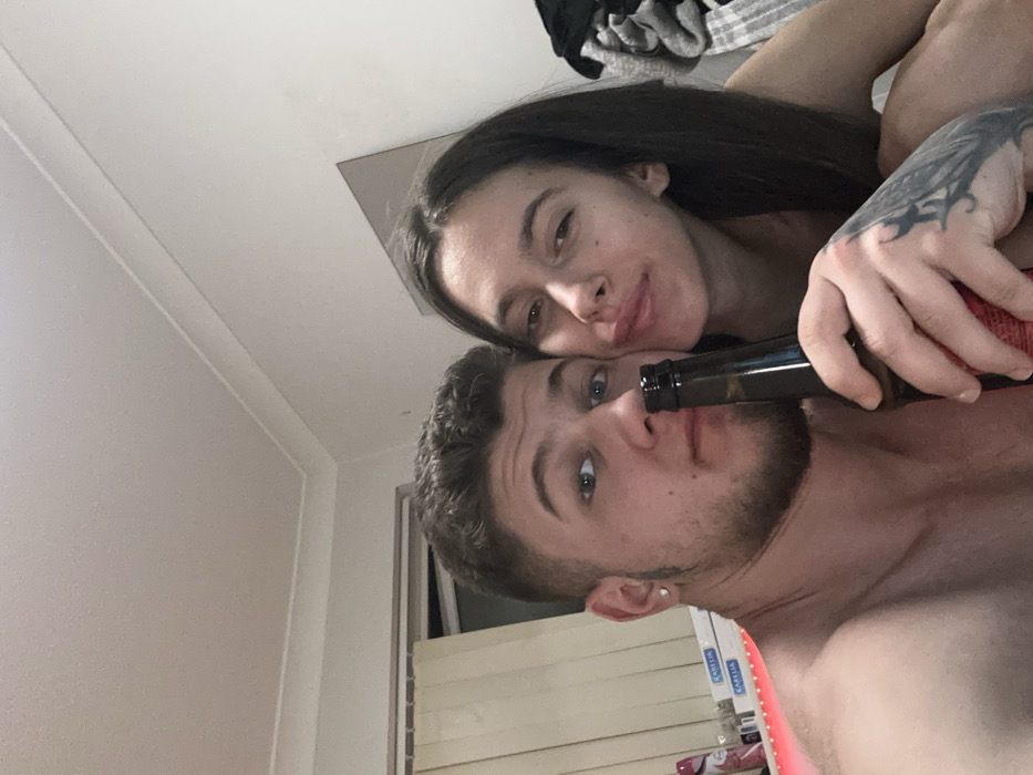 This image depicts two adult individuals, a male and a female, in close physical proximity within an indoor residential setting in Corby, United Kingdom