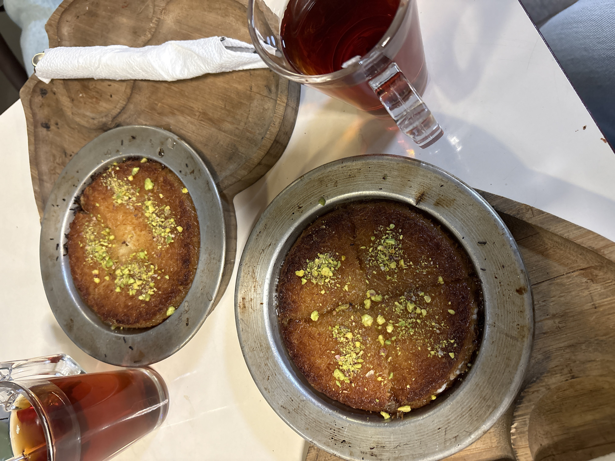 - "two plates of Kunafa, a Middle Eastern dessert, topped with pistachios" by FM-hmEBs2, licensed under CC BY 4.0