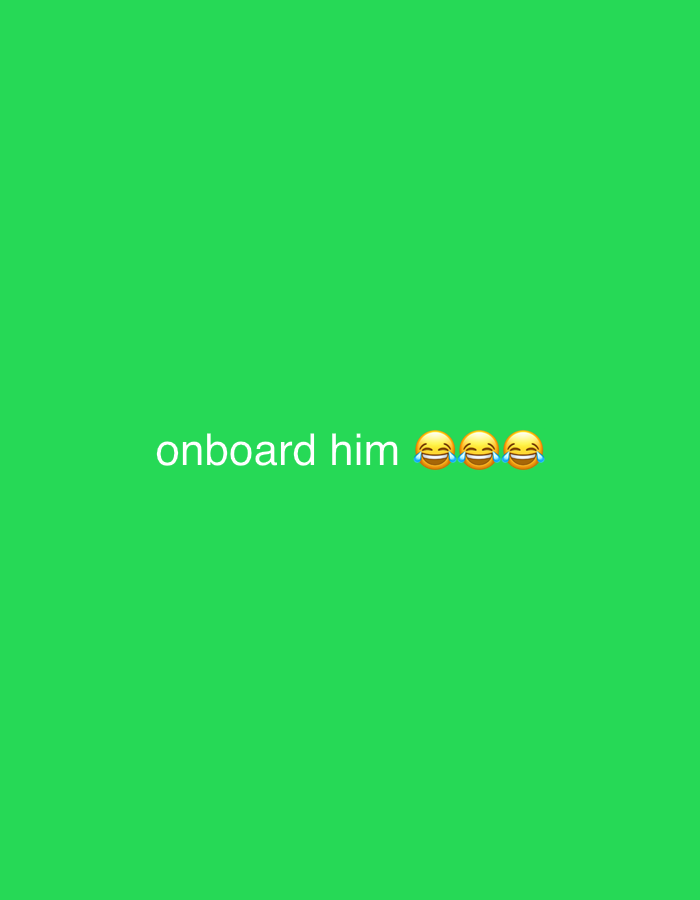 - "Against a solid green background, the text "onboard him" is displayed in white, followed by three "face with tears of joy" emojis" by FM-SHEMl1, licensed under CC BY 4.0