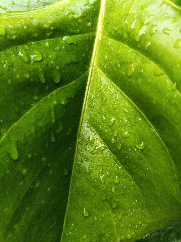 - "A close-up captures a vibrant green leaf glistening with water droplets" by FM-WQ84z2, licensed under CC BY 4.0