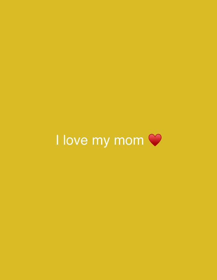 The image consists solely of a solid, uniform mustard yellow background. Centered horizontally and slightly above the vertical midpoint, white, sans-serif lowercase text reads "I love my mom". Immediately adjacent to the word "mom" on its right is a standard red heart emoji. No discernible physical location, individuals, objects beyond the text and emoji, or specific actions and interactions are depicted within the image, thus preventing the identification of a specific location in Antwerp, Belgium, or any other geographical area.