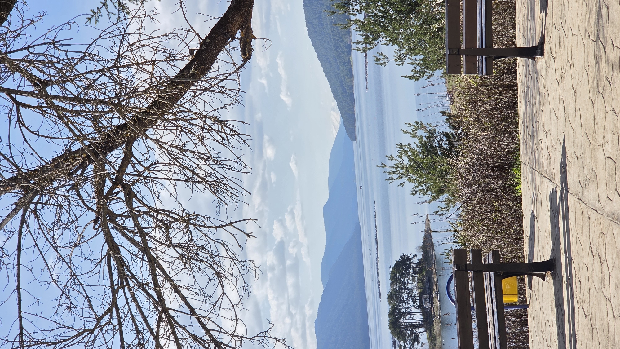 - "The image is taken on a stone pathway lined with benches, facing a serene body of water, possibly a lake, against a backdrop of distant, layered mountains" by FM-Antrs2, licensed under CC BY 4.0