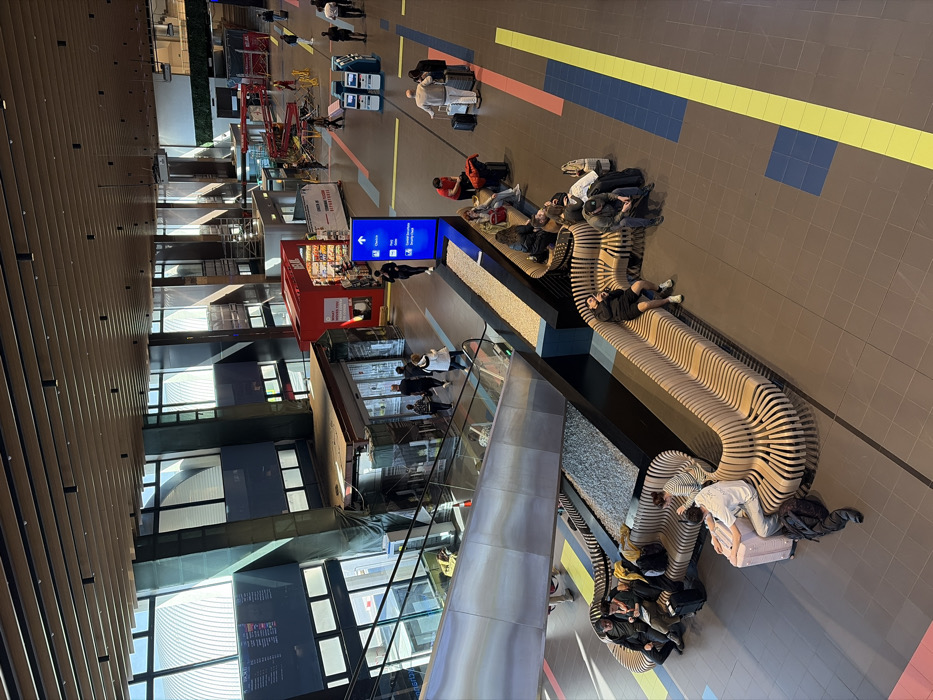 - "The image depicts a high-angle view inside a modern airport terminal in Otopeni, Romania" by FM-ZdHD02, licensed under CC BY 4.0