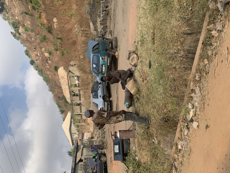 - "The scene depicts an outdoor area in Okengwe, Nigeria, characteristic of an informal auto repair or salvage operation, with a prominent rocky hillside in the background" by FM-NEBU82, licensed under CC BY 4.0