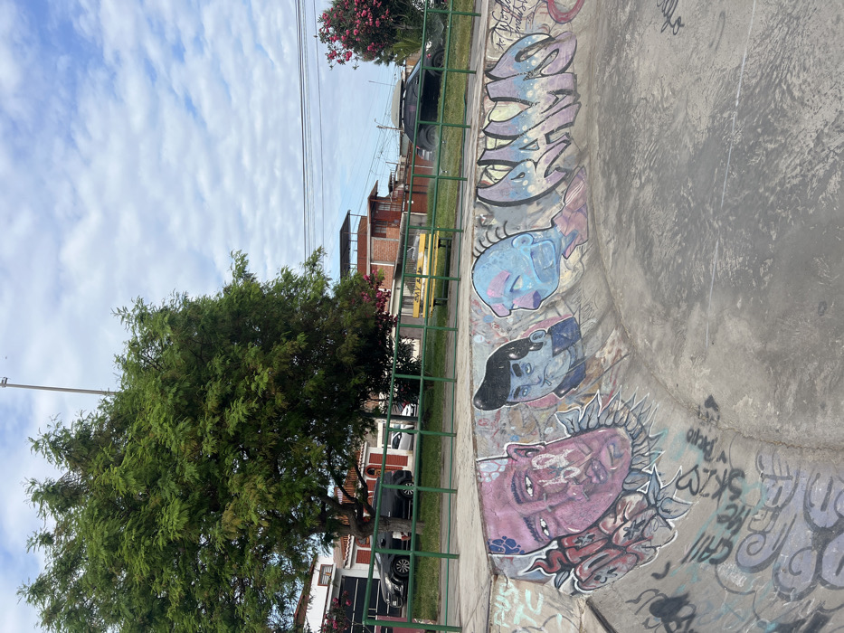- "The image depicts a concrete skate park bowl in a residential area of Arica, Chile, under a partly cloudy sky" by FM-8OFL92, licensed under CC BY 4.0