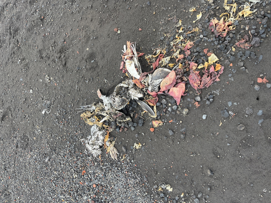 - "A decomposing bird carcass lies on dark, gravelly ground, surrounded by decaying organic matter" by FM-SiGDg2, licensed under CC BY 4.0