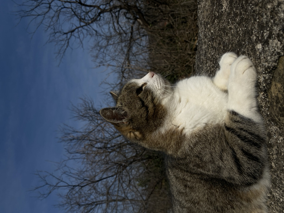 - "A domestic cat lies on a dark, textured surface in Arbanassi, Bulgaria" by FM-PFEbq2, licensed under CC BY 4.0