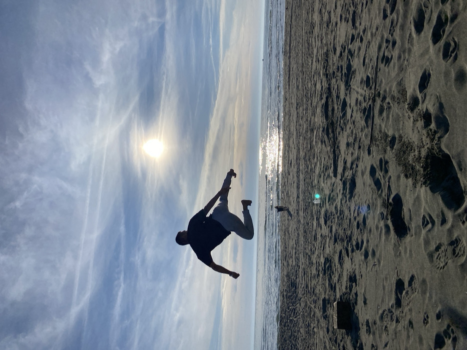 - "A man is doing a backflip on a beach" by FM-gzVUI2, licensed under CC BY 4.0