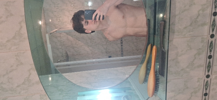 - "The image displays a reflection of a young male individual in an oval mirror within a bathroom setting" by FM-4IrwF3, licensed under CC BY 4.0