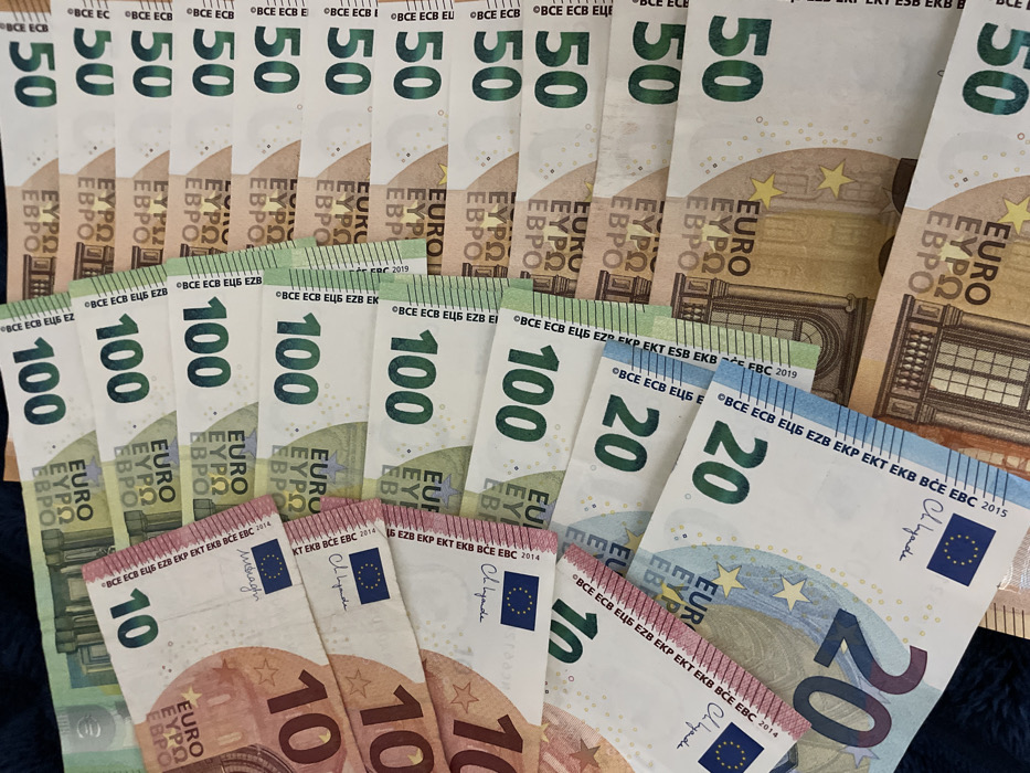 - "The image displays a close-up, top-down view of multiple Euro banknotes fanned out and overlapping on a dark, possibly fabric, surface" by FM-LkssQ2, licensed under CC BY 4.0