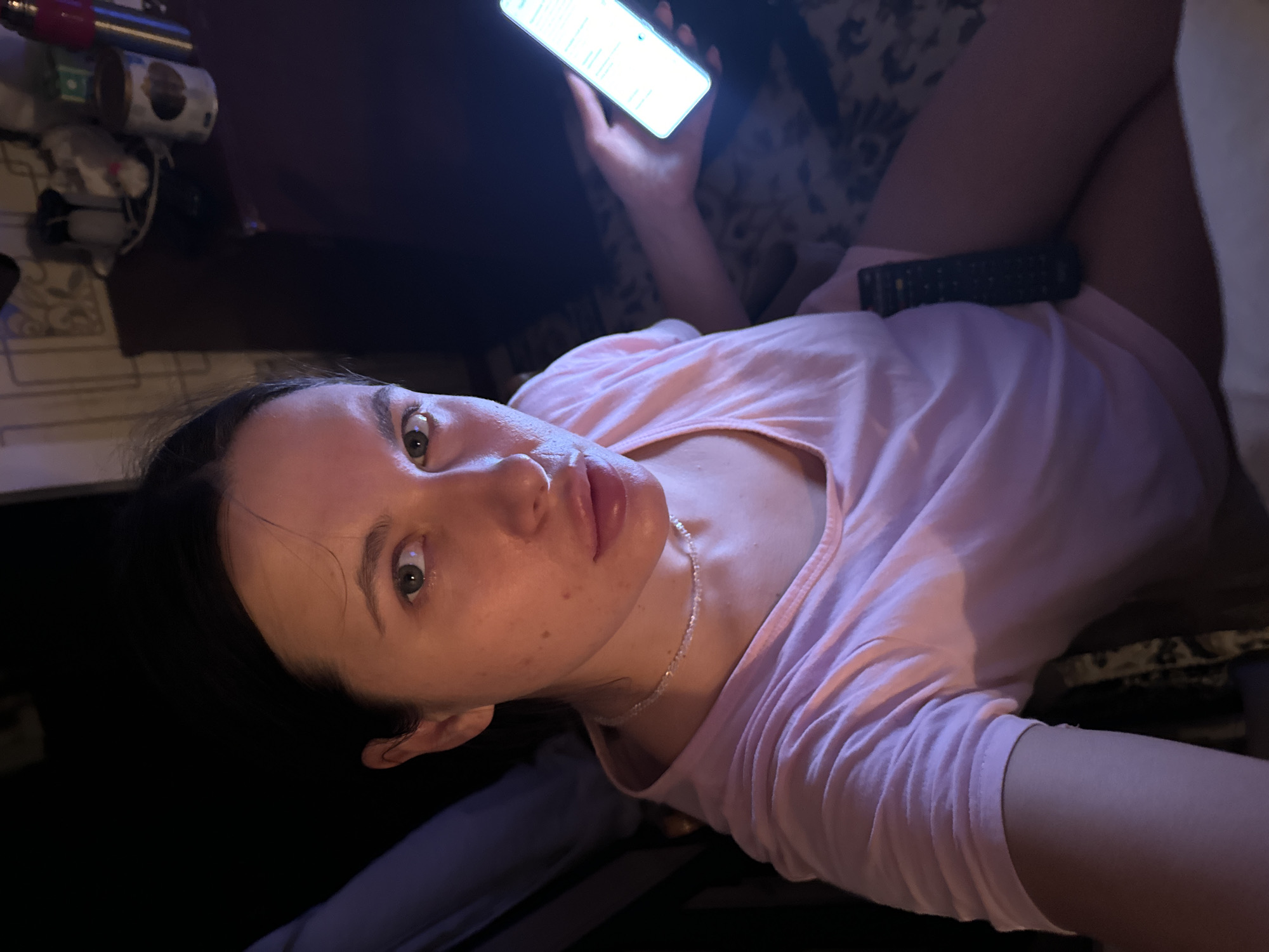 - "A woman is lying down looking up at the camera, holding a brightly lit smartphone in her left hand" by FM-j2hvk2, licensed under CC BY 4.0