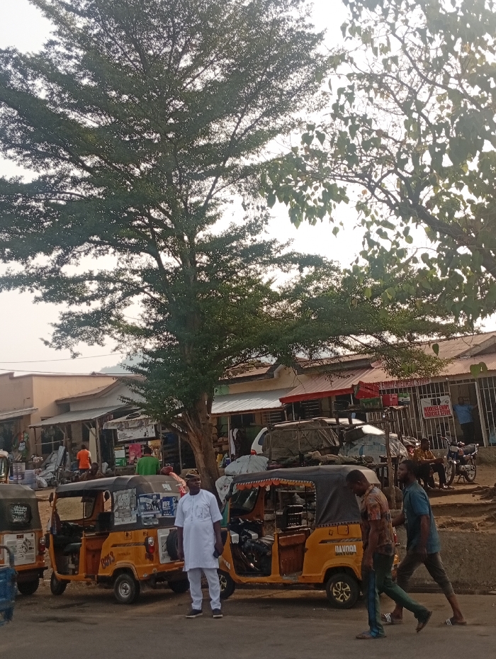 - "The image depicts an outdoor street scene in Adankolo, Nigeria, under clear daytime conditions, possibly late afternoon, with a bright sky visible through tree foliage" by FM-njz8m2, licensed under CC BY 4.0