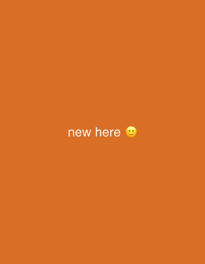 The image displays a solid orange digital background. White text reading 'new here' is centrally positioned, with a yellow smiley face emoji placed immediately to the right of the word 'here'. No specific physical location in Kiruna, Sweden, is depicted within the image. The scene contains no individuals, distinct physical subjects or objects beyond the text and emoji, and no actions or interactions. The environment is a uniformly orange field, indicating a graphic design rather than a physical setting.