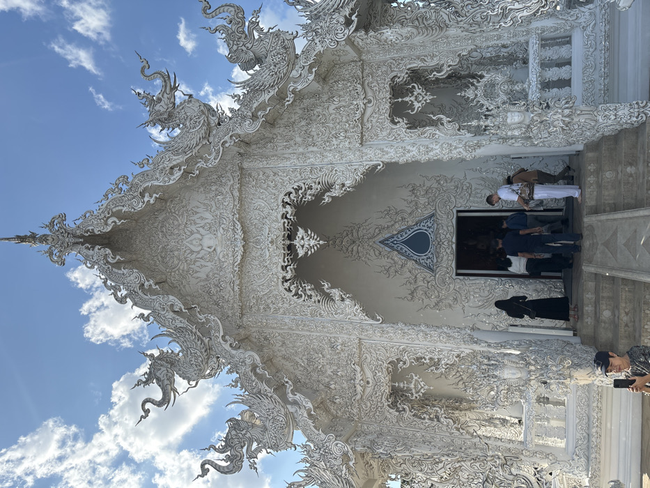 - "The image displays the highly ornate, all-white exterior of a temple in Ban Rong Khun, Thailand, under a clear blue sky with scattered white clouds" by FM-bmo3E3, licensed under CC BY 4.0