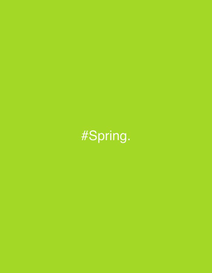 The image displays a solid, uniform lime green background. Centered horizontally and vertically on this background is white text that reads "#Spring.", followed by a period. There are no other discernible subjects, objects, people, actions, or interactions depicted. The image does not provide any visual information or environmental cues that would allow for the identification of a specific location, including the city of Lviv, Ukraine.