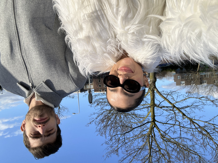 - "A selfie-style outdoor photograph taken in Utrecht, Netherlands, depicts a woman and a man under a clear blue sky with sparse clouds" by FM-7S7sy2, licensed under CC BY 4.0